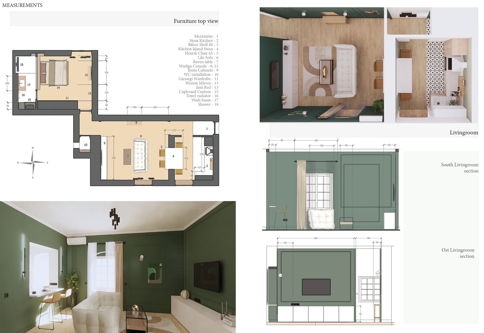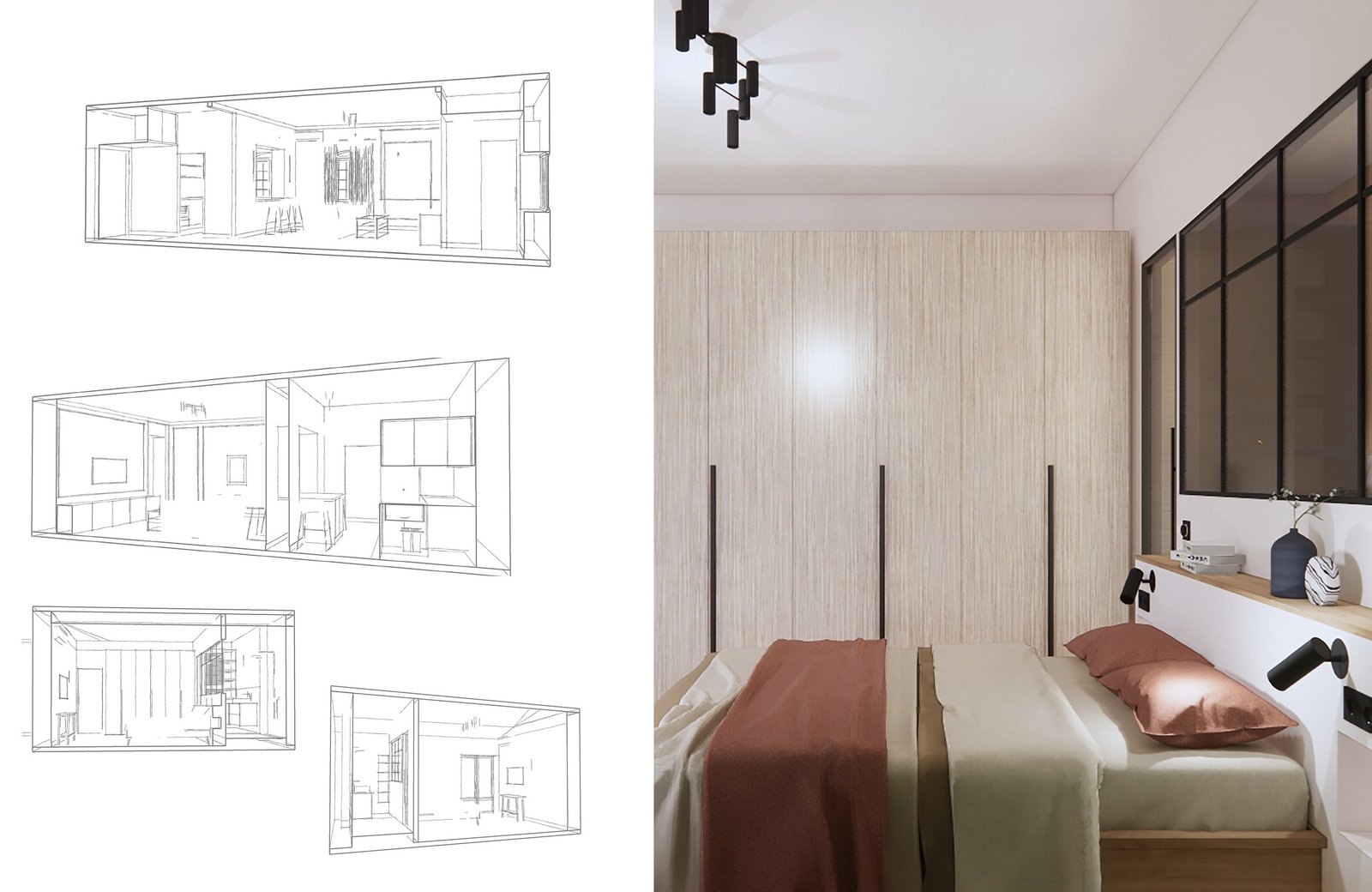 Grâce à une approche globale incluant plans 2D, études techniques, moodboards, et une sélection minutieuse de mobiliers et matériaux, ce projet illustre une rénovation sophistiquée et fonctionnelle adaptée aux besoins contemporains.