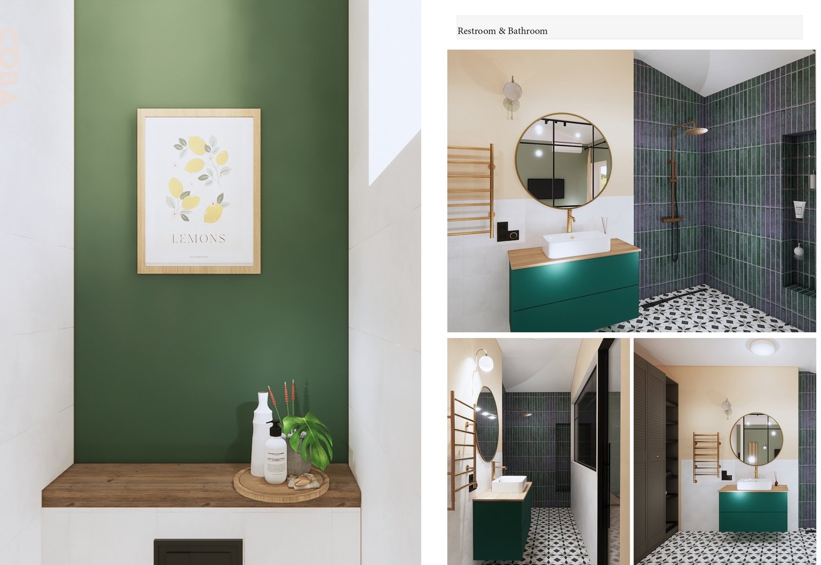 Le Batini Project est une transformation complète d’un espace résidentiel, mêlant harmonieusement tons verts, textures bois et laiton, et une optimisation de la lumière naturelle. L’objectif principal de cette rénovation était d’ouvrir les espaces de vie tout en intégrant une salle de bain dans la zone nuit.